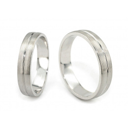 Platyna jest bardzo wytrzymałym metalem szlachetnym. Można powiedzieć, że jest ponadczasowa. Co ważne, ze względu na brak niklu w swoim stopie, nie uczuli nawet bardzo wrażliwej skóry. Powiedzieć, że wybór obrączek ślubnych z platyny to dobry wybór, to powiedzieć trochę za mało. Platynowe obrączki to wybór bardzo dobry i gdy po latach będziecie oglądać swoje dłonie przyozdobione w ślubne pamiątki, dalej będziecie zachwycać się blaskiem i pięknem biżuterii. Jest to bardzo ciekawy model, który posiada dwa rowki po obwodzie obrączki. Damską obrączkę, od męskiej odróżnia malutki diamencik oprawiony w centralnym punkcie, pomiędzy rowkami. Śliczna klasyka z nutką nowoczesności.