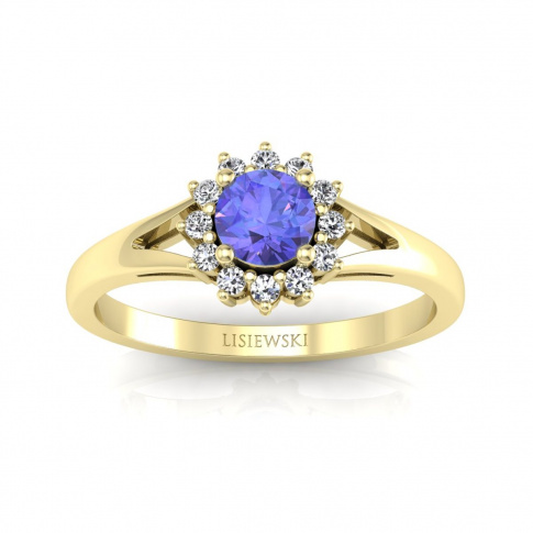 Pierścionek z żółtego złota z tanzanitem i brylantami