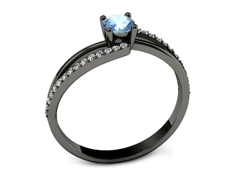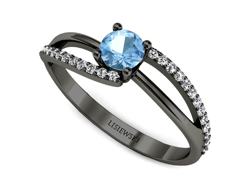 Pierścionek zaręczynowy z czarnego złota z topazem i diamentami