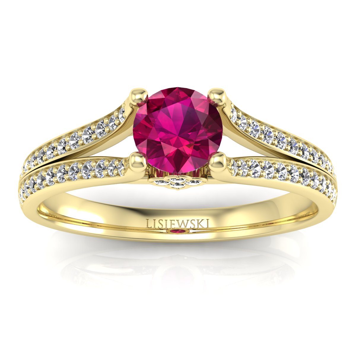 Pierścionek zaręczynowy, rubin, żółte złoto