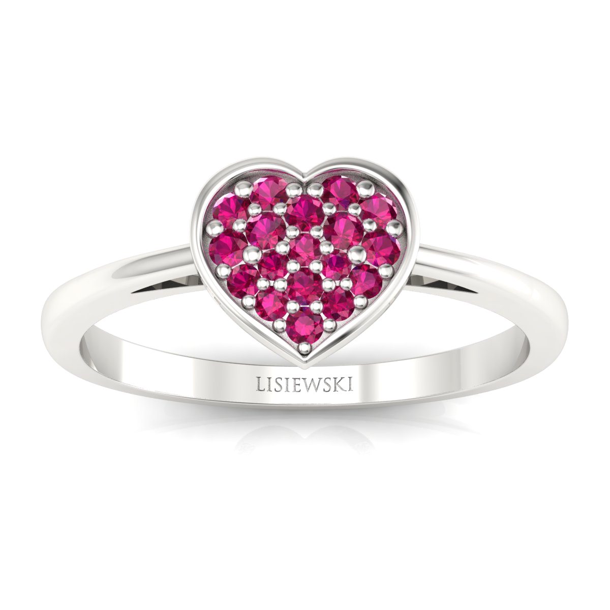 Pierścionek z białego złota z 18 rubinami