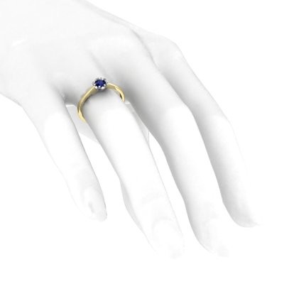 Szafir charakteryzuje się wspaniałą, bardzo intensywną, niebieską barwą. Jest przepiękny. Jubilerzy często wykorzystują go, na przykład do tworzenia pierścionków. Bardzo dobrze łączy się on zarówno z białym, jak i żółtym złotem. Wokół kamienia głównego, czyli szafiru zostały umieszczone małe serduszka z białego złota. Natomiast pozostałe elementy pierścionka zostały wykonane z żółtego złota o próbie 585. Pierścionek jest skromny i jednocześnie niezwykle stylowy. Z pewnością przypadnie on do gustu wielu kobietom.