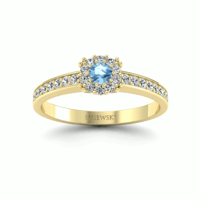 Pierścionek składa się z 1 topazu o pięknym szlifie brylantowym ~0,10ct a także 48 diamentów ~0,57ct. Wszystkie diamenty są czystości Vs1 oraz barwy H. Ilość kamieni na obrączce może ulec zmianie w zależności od wybranego rozmiaru. Masa pierścionka zależna jest od jego rozmiaru, a tym samym ilości kruszcu użytego do jego wytworzenia.