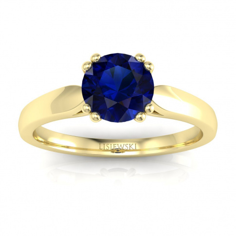 Szafir jest bardzo rzadko spotykanym kamieniem szlachetnym. Charakteryzuje się wyjątkowo piękną, niebieską barwą. Szafiry są wydobywane na Sri Lance. Są jednymi z najtwardszych kamieni na ziemi. W tym pierścionku szafir jest kamieniem głównym i ma masę 0,95 ct. Jego niezwykłą urodę, podkreśla dodatkowo okrągły, brylantowy szlif. W pierścionku znalazły się jeszcze dwa diamenty o łącznej masie 0,026 ct. Pierścionek został wykonany z żółtego złota o wysokiej próbie 585. Jest piękny oraz elegancki.